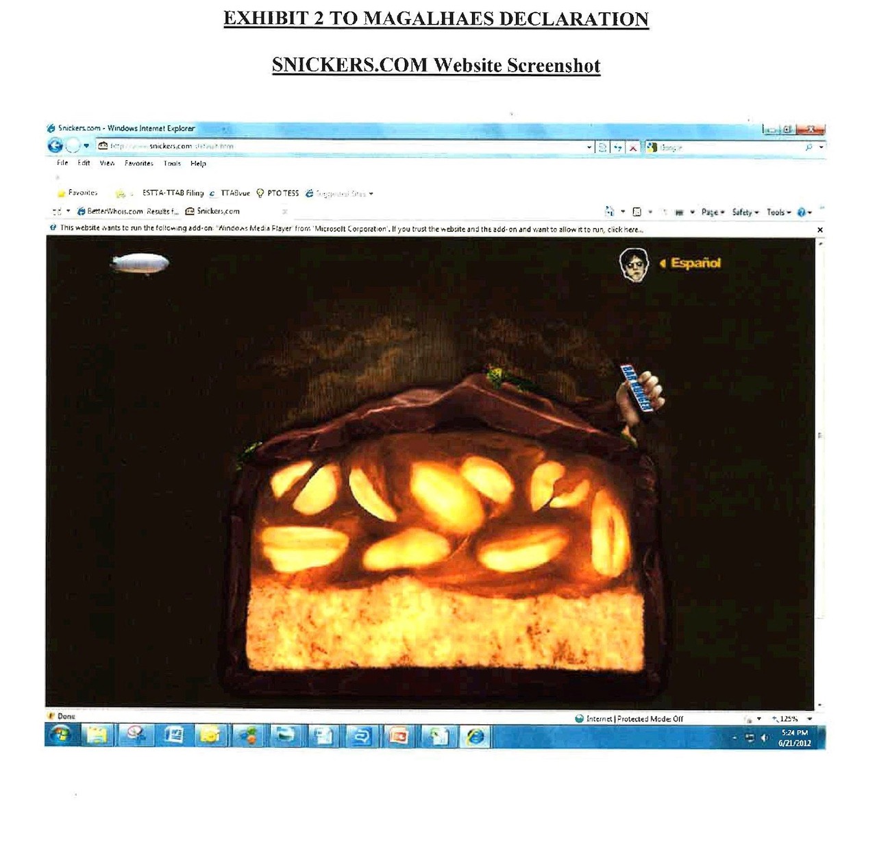Mars пришлось предоставить еще больше доказательств в пользу регистрации своего товарного знака: расходы на рекламу батончика SNICKERS, в которой использовалось заявленное обозначение, в период с 2007 по 2013 год составили более 50 миллионов долларов США, в частности, в 2010 году эти расходы составили более 10 миллионов долларов США, доказательств о том, что с 2007 года заявленное обозначение постоянно появлялось в различных СМИ, как печатная и онлайн реклама, в телевизионной рекламе, в розничных магазинах, в социальных сетях и на различных сайтах, с 2010 по 2013 годы объемы продаж батончика SNICKERS в точках продаж, где использовалось для рекламы заявленное обозначение, составили более 53 миллионов долларов США. Общий объем продаж за период с 2007 по 2013 года в США составил более 7 миллиардов долларов США. То есть Mars настаивала, что такие огромные расходы заявителя на рекламу и объемы продаж товара, на котором расположено заявленное обозначение, доказывают, что заявленное обозначение приобрело популярность и сильную репутацию среди потребителей, а также указывает на источник своего происхождения - компанию Mars.